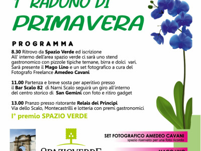 Ore 11:00 Partenza e breve sosta per aperitivo presso il Bar Scalo 82 di Narni Scalo, seguirà un giro all'interno del centro storico di San Gemini con foto e ritiro gadget.